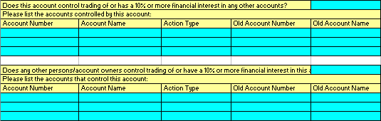 If the account has a 10% or more financial interest and / or controls the trading of other accounts carried with the Member, the account names and account numbers of these accounts must be provided.
