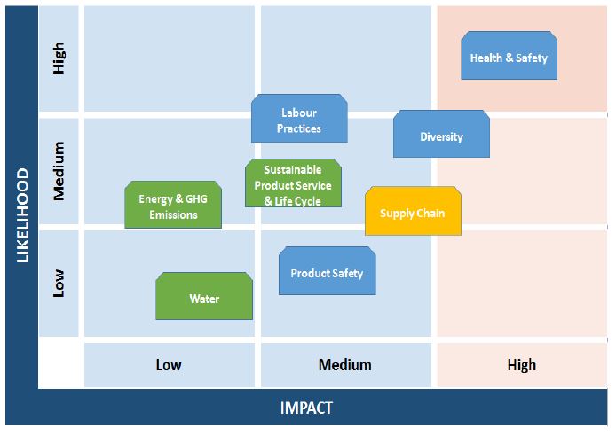 | | Safety and Health | Diversity | Labour Practices | Supply Chain | Climate Change | Water | Etc |